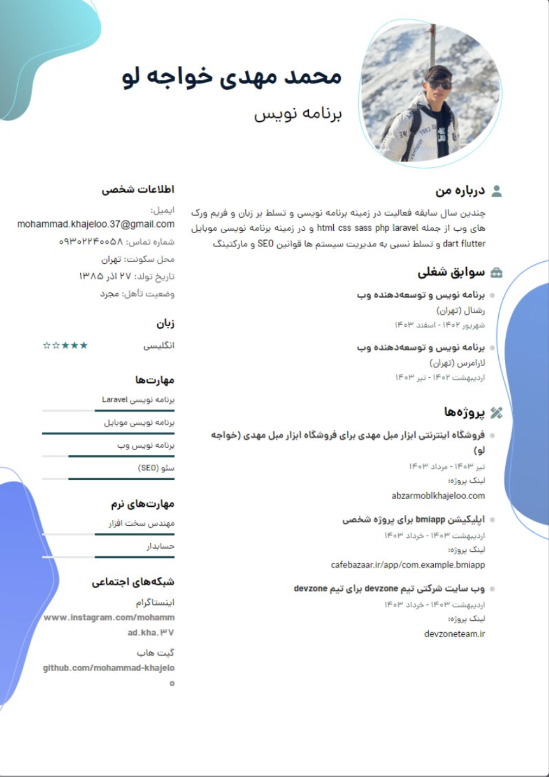 تجربه ۴ سال کد نویسی فرانت اند و لاراول و توسعه اپلیکیشن موبایل و ۱ سال سئو